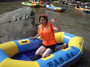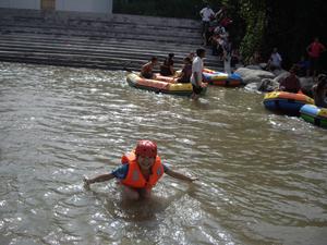 我們早上出發,到達奉新縣還參觀了宋應星公園以及他的作品《天工開物》。吃過午飯,大家興高采烈向“仰天峽”進軍!是在漂流河道的中部,有一段長約一公里的連續險灘區,考驗著游客的心理承受能力,我們兩兩一組,下水了。打水仗,賽劃艇成了這群人的樂趣;在河道狹窄處,有“交通堵塞”的;在水流湍急處,有“飛天而降”的;在開闊平坦處,有“原地打轉”的。形態各異,但是樂在其中。漂流進行了大約一個半小時,從高處順流而下,直到盡頭。